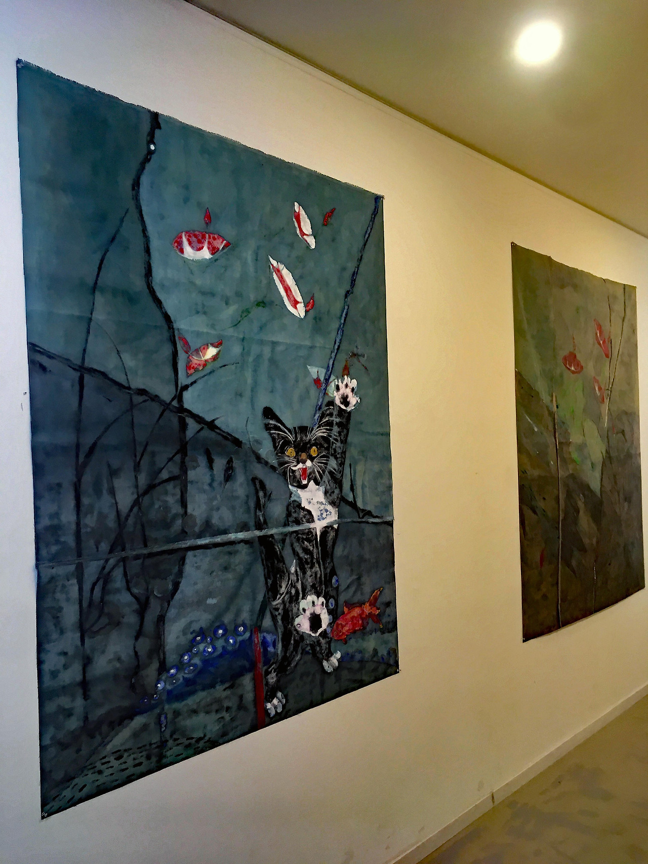 This is because the color of the shade caused by reversible light on the overlapping fabric determines the position of the cat and morning glory, and over time, the distorted desires of the other overlap and develop into an image of fabric.