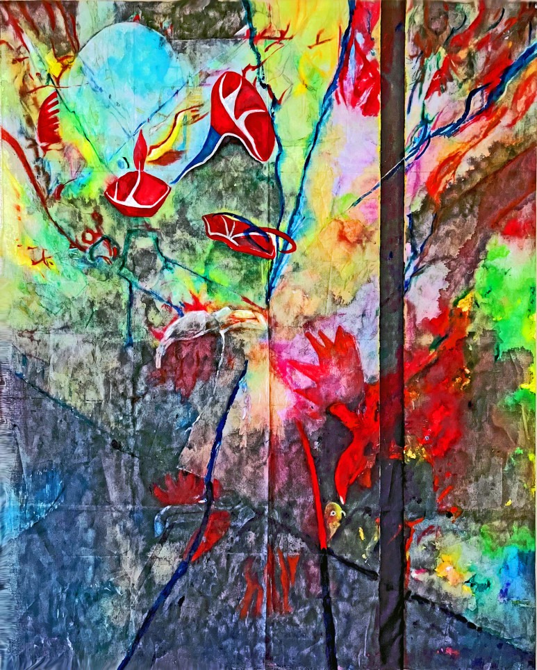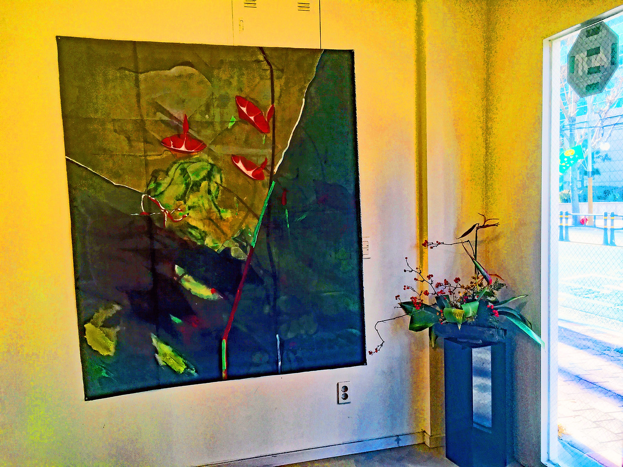 Abstract painting <Morning glory Window> painting installation performance with treacherous conceptual art as Lacan's object, July 3rd, 2023 Haeundae-gu Office Gallery in Busan.