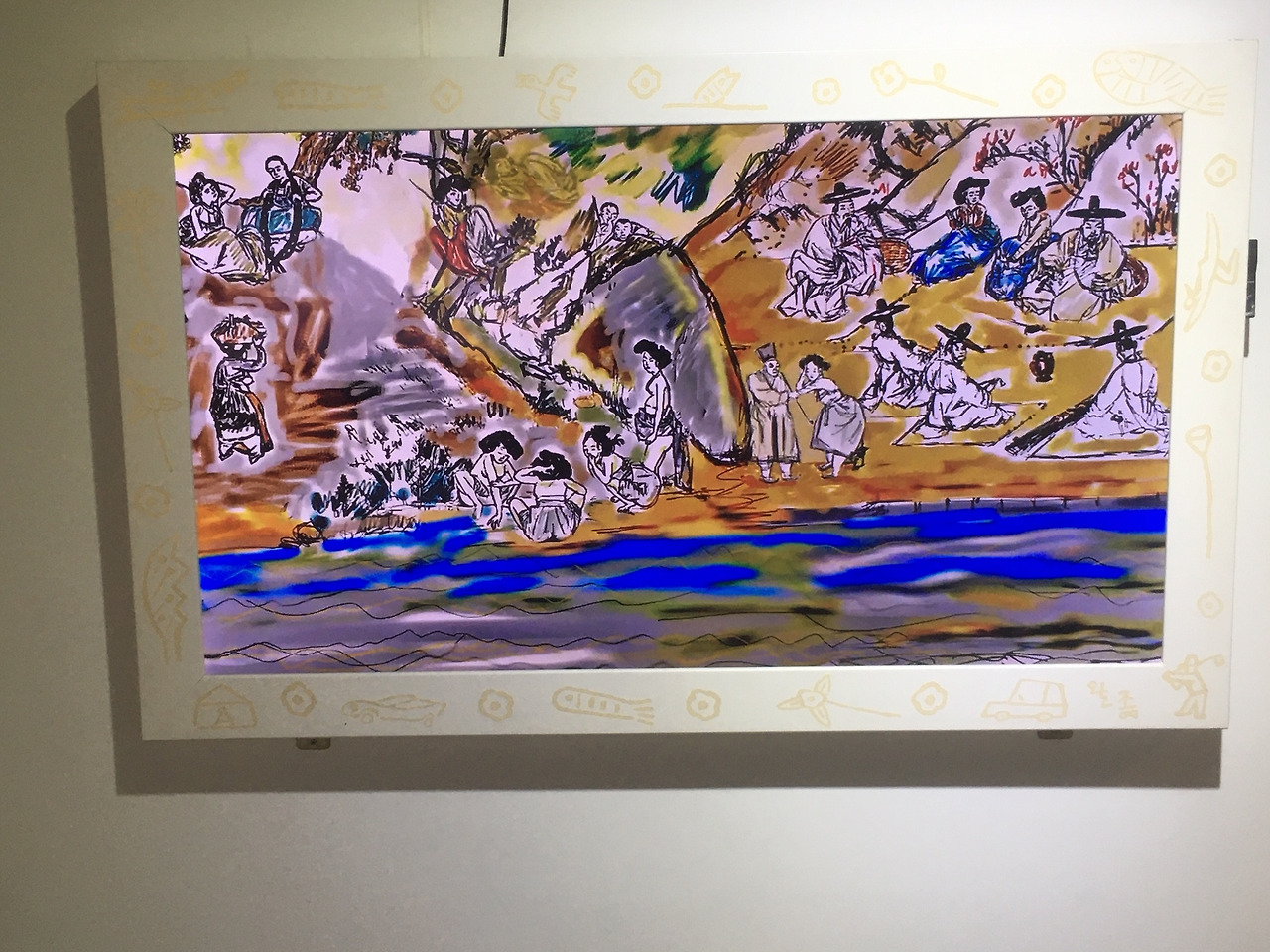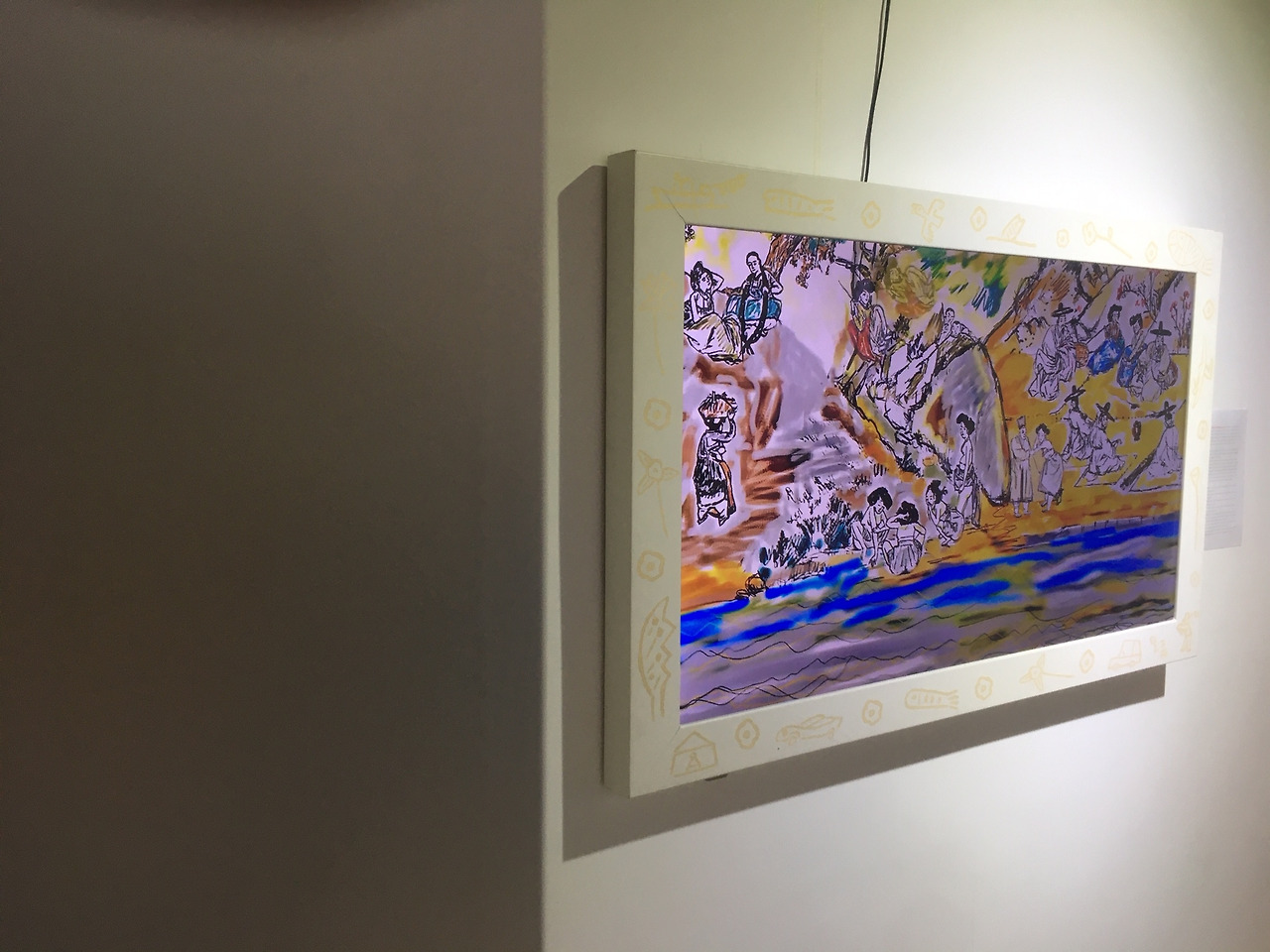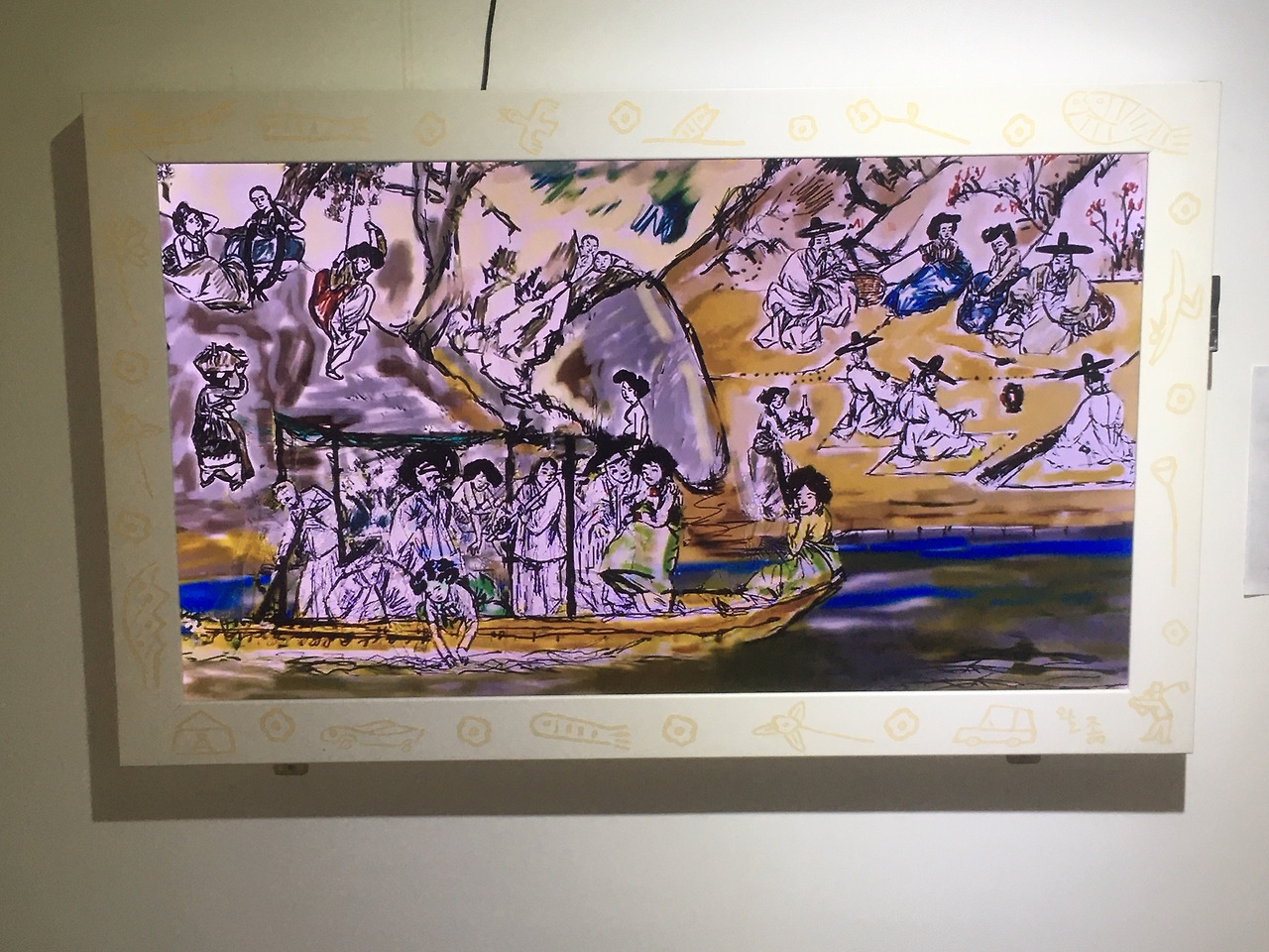 Media art "Shin•Yun•Bok•Poong•Ju•Mil•Hoe•Do" is a cartoon image of a cartoonist Louis Choi Chul-joo, who reconstructed Shin Yun-bok's folk painting after seeing Kim Hong-do's “Song·Ha·Sun·In·Chui·Saeng·Do”