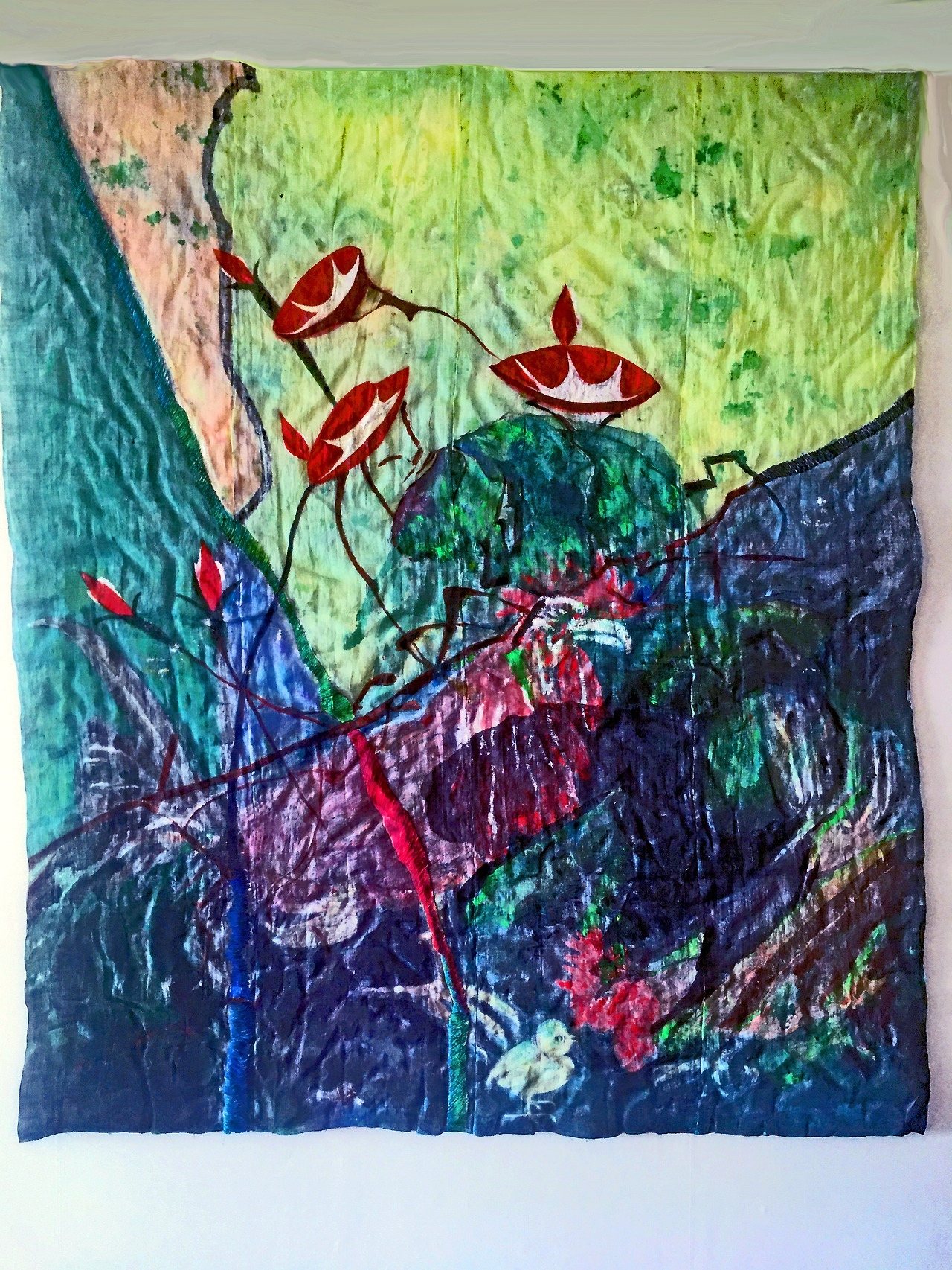 Chul-joo Choi’s thread painting: morning glory 2022-c-back, 135X156cm, acrylic and composite materials on cloth, 2022