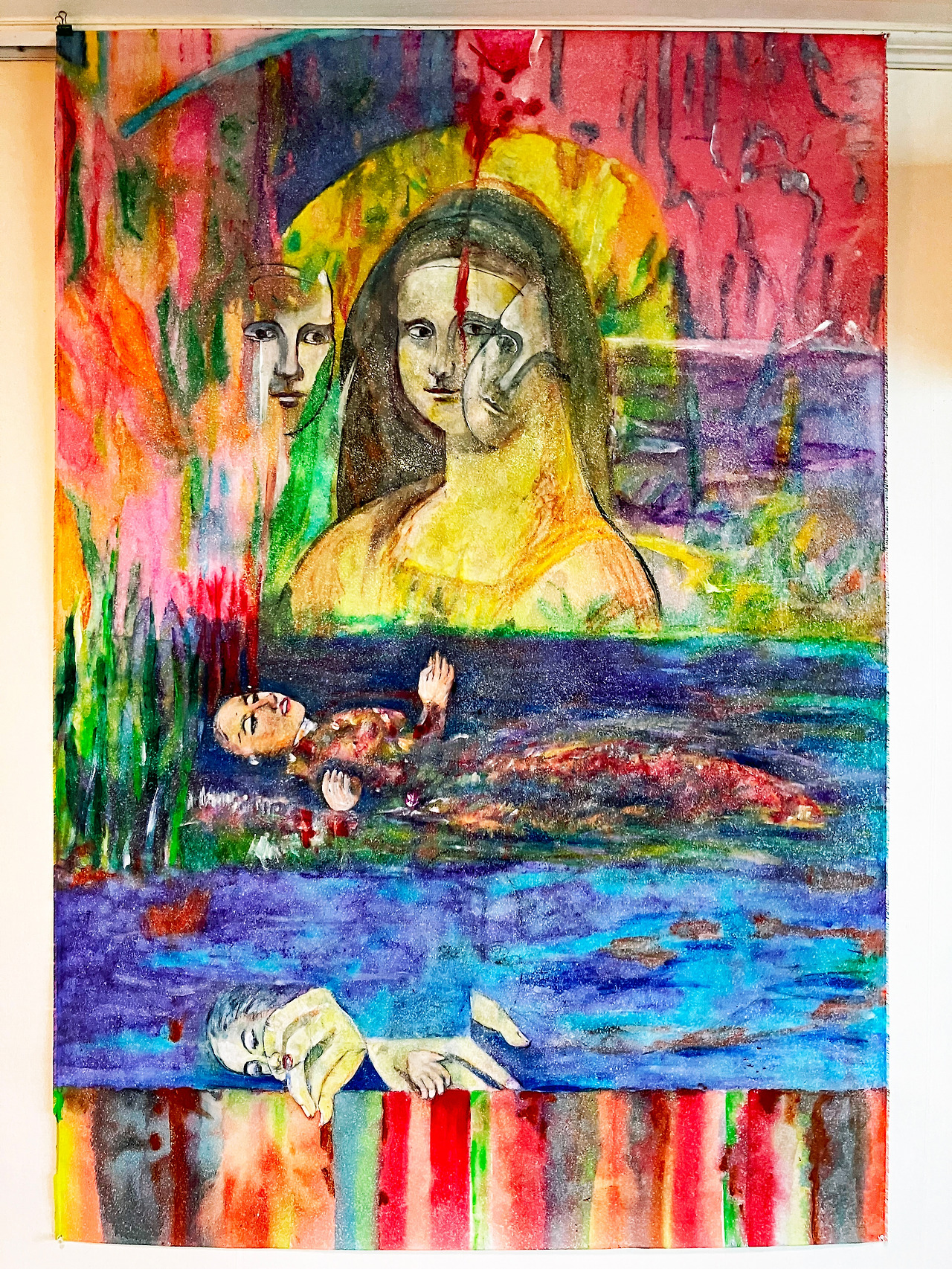 Louis Choi Chul-joo, the 2025-Mona Lisa reflected in the pond, 113X165cm, acrylic and composite materials on cloth, 2025