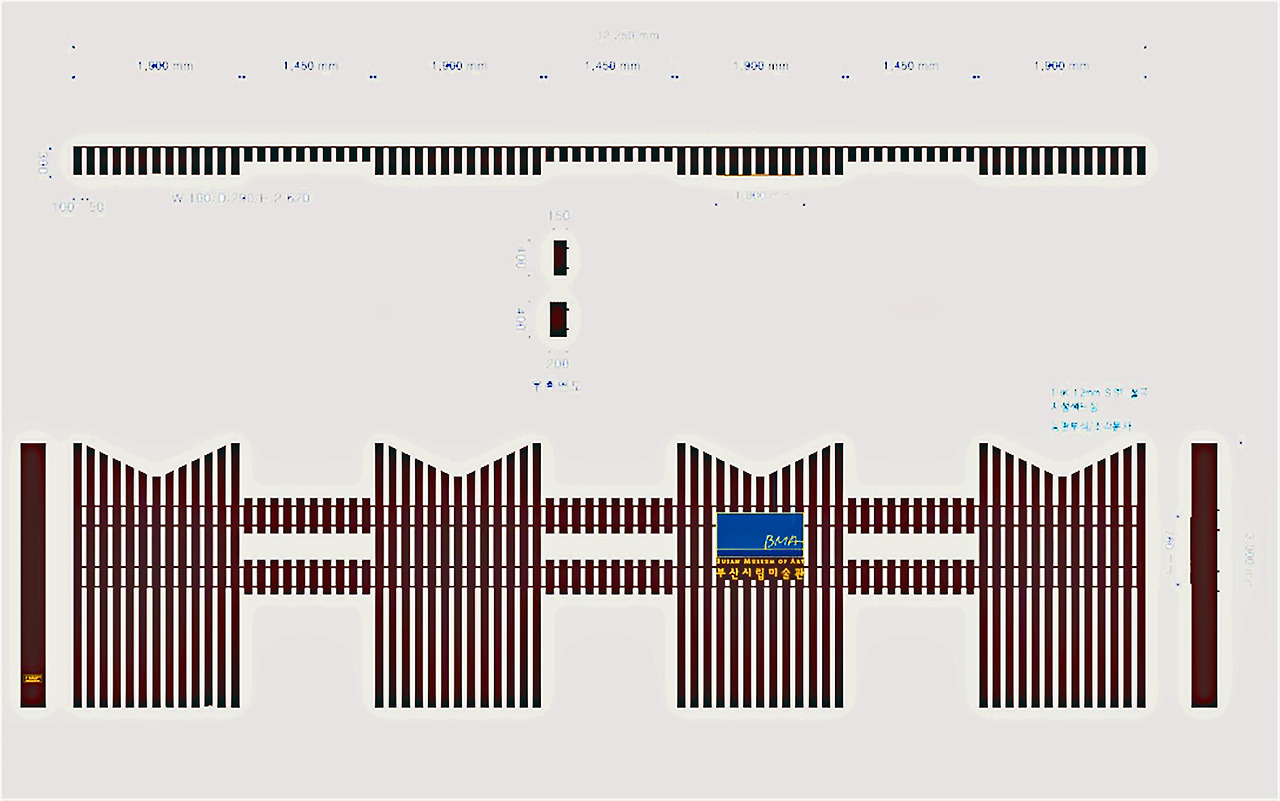 Overall, this has a complex visual effect that appears to be the shape of the Busan Museum of Art facade. Each vertical bar is a part of the entire façade and is a symbolic installation with the continuity and difference of the image.