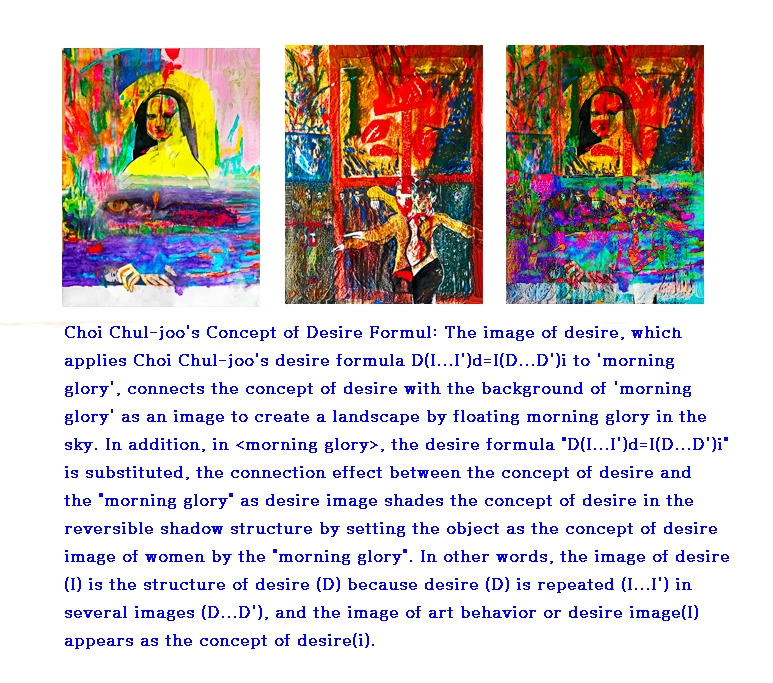 Desire Design Methodology in Abstract Art Theory on Painting Design, Contemporary Artist Choi Chul-joo's Desire Concept Abstract Design Methodology: < > As an Abstract Korean painting of Modern Art, Desire Formula <D(I...I')d=I(D...D'i)i> is applied to overlap the painting < Louis Choi Chul-joo, morning glory p139-1-a portrait of a mirror reflecting its desire on the window, a hand-painted picture on a computer> created by reversible light.