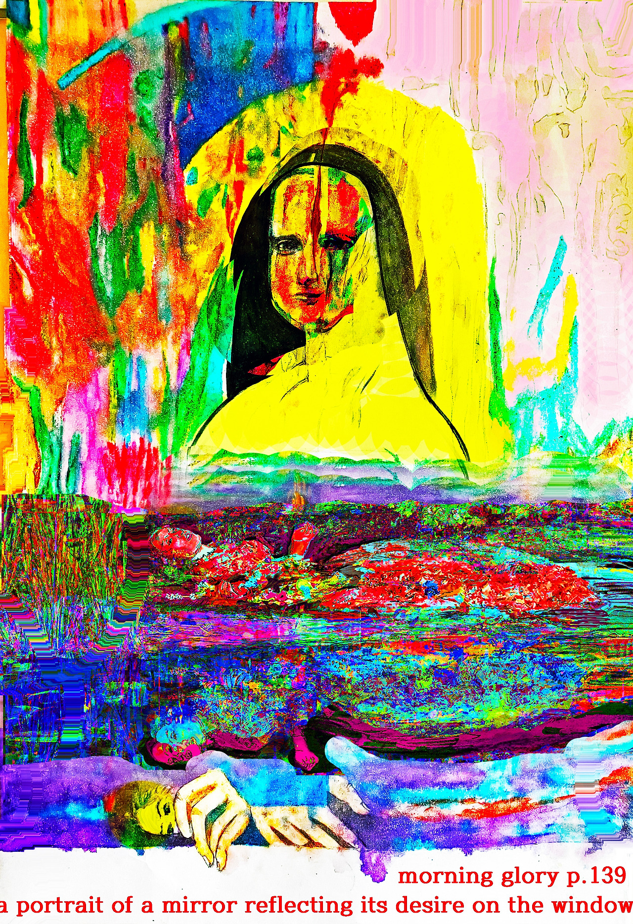 This translates to the first non-realistic abstraction poster at Louis Choi Chul-joo's 2022 New York Exhibition to actualize the Desire Object. The image <Louis Choi chuljoo, morning glory p139-1-a portrait of a mirror reflecting its desire on the window, a hand-painted picture on a computer> becomes a non-real abstraction of reality.