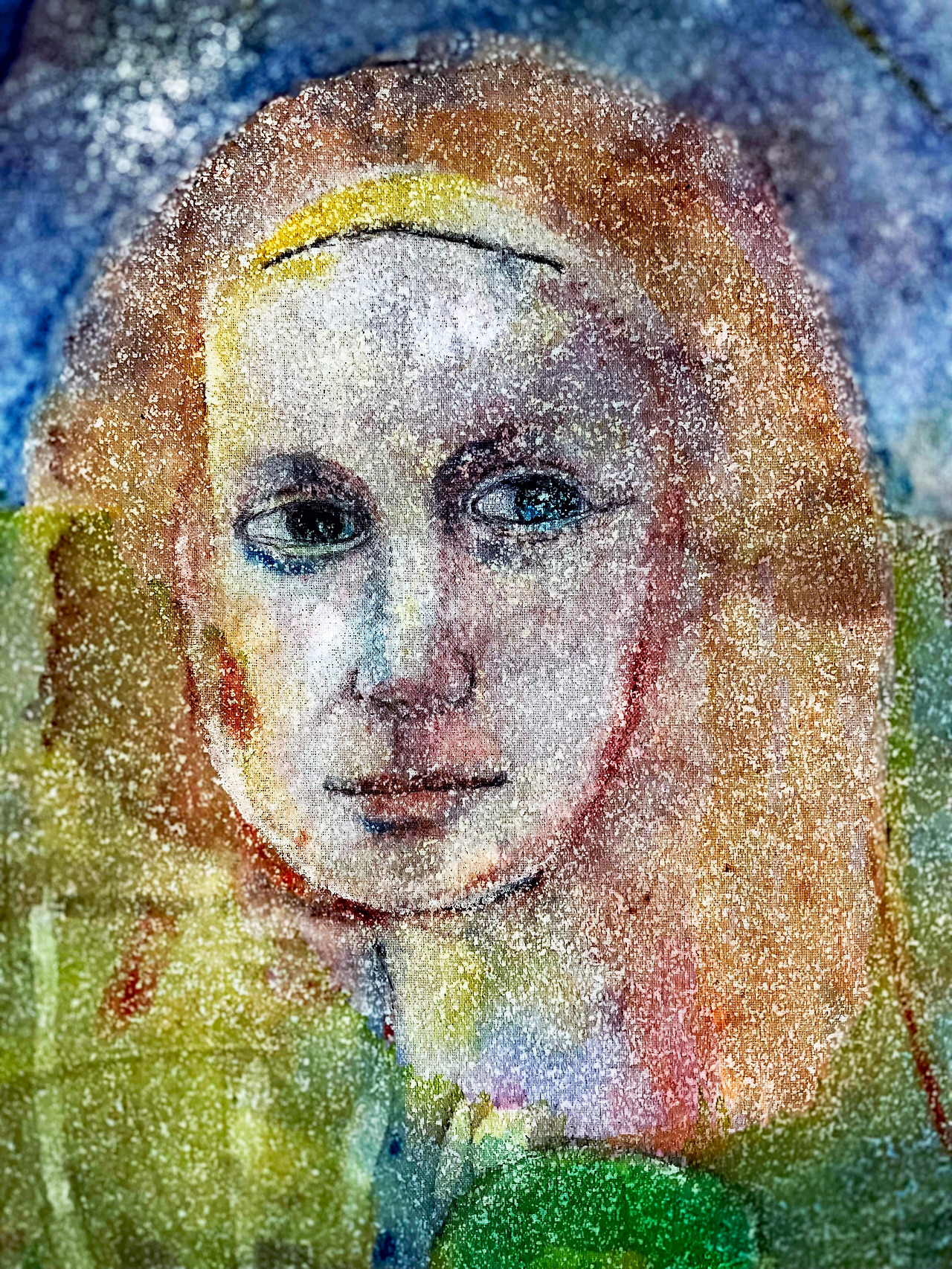 In the symbolic abstract world, the Mona Lisa as a real visual image aimed at by the abstract structure lacking by repeating image sketches as linguistic meanings in flat formations and colors reveals its existence in the form of non-existent beings and imaginations reflected in the pond, and it is a sketch that passes through an allegory that images morning glory, "The Three Graces" fish, and pond structure as reality.