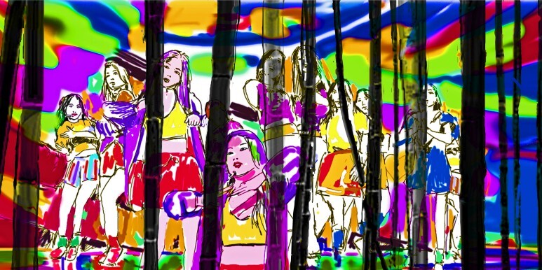 Desire Concept Realistic Abstract Work: Louis Choi chuljoo, In front of the bamboo forest105 -Rocket Punch's exciting "bimbamboom": By repeatedly applying the concept of imaginary world and desire and Choi Chul-joo's desire formula <D(I...I')d=I(D...D'i)i> to the image of the work, it acquires aesthetic value and reveals its meaning by realizing formability in the shadow of reversible light. / The meaning of the shape, which is covered by the actual changed instantaneous movement of the shape, results in linguistic abstraction. In other words, the realistic shape of the other person's desire in a momentary event is a linguistic abstraction of the same meaning. Conceptual art with morning glory and bamboo as cultural background is linguistic abstraction. The abstract creates a conceptual structure based on the shape of subsequent reality fostered by language and hides the desire of others in a momentary event.