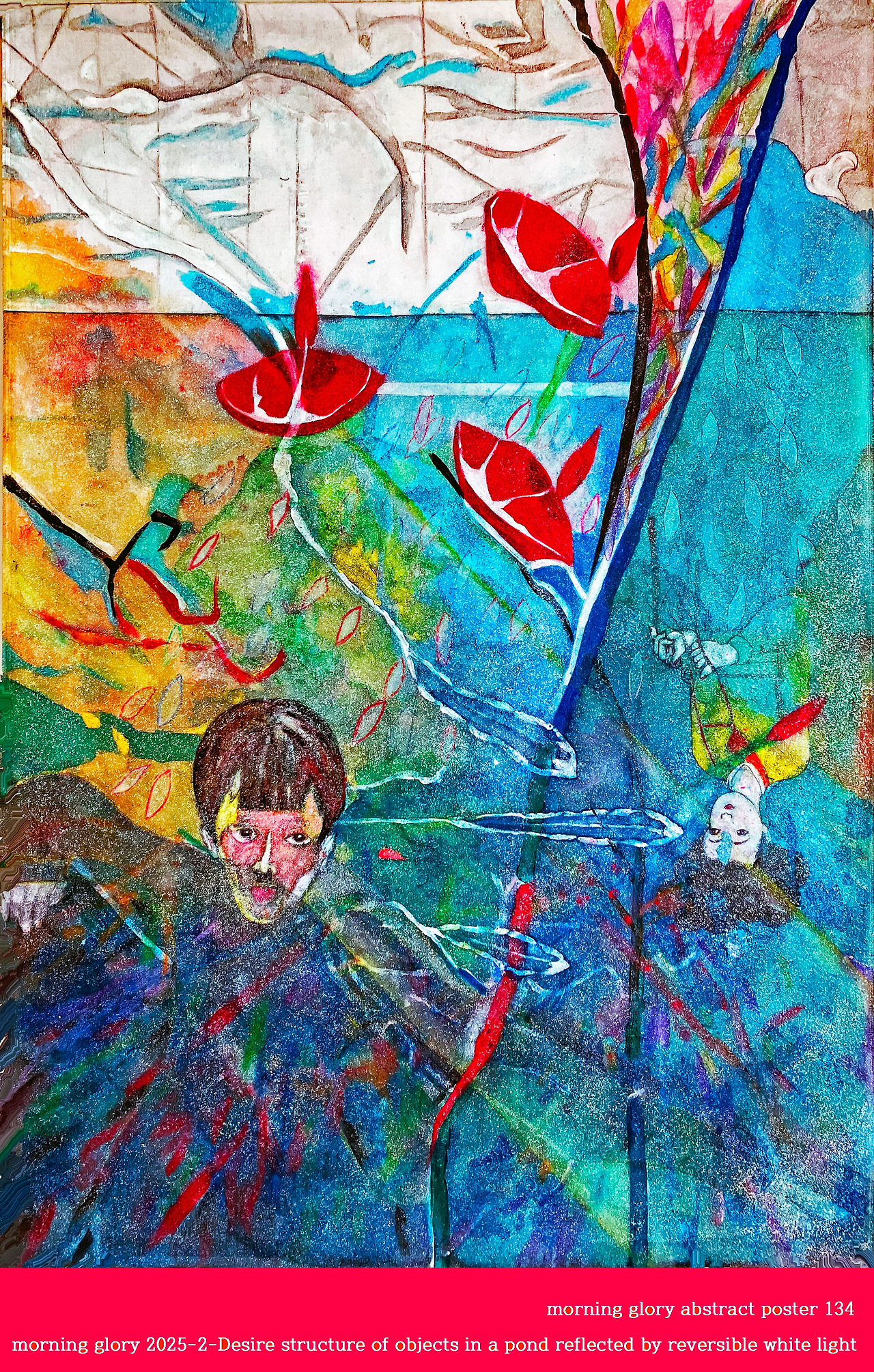 And by expressing the absence of the concept of desire in reversible temporality as a phenomenal image, "morning glory" expresses the mirror image reflected in the "pond" to abstract the structure of reality from the desire hidden in the shade of reversible light in the intermediate stage, which represents the existence of various desires beyond the current abstract color and planar structure.