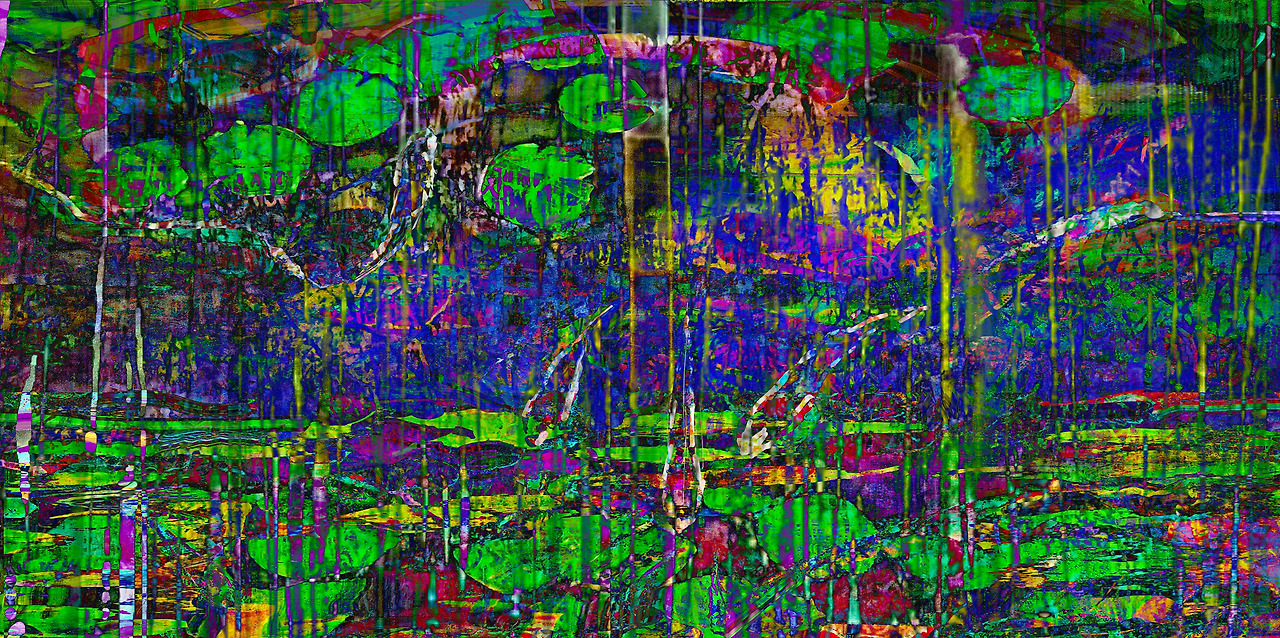 Louis Chul-joo Choi, morning glory p134-2-Desire structure of objects in a pond reflected-Mona Lisa, a hand-painted picture on a computer
