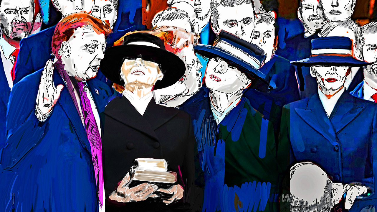Louis Chul-joo Choi, morning glory p134-1-Trump did not touch the Bible, nor the kiss, a hand-painted picture on a computer
