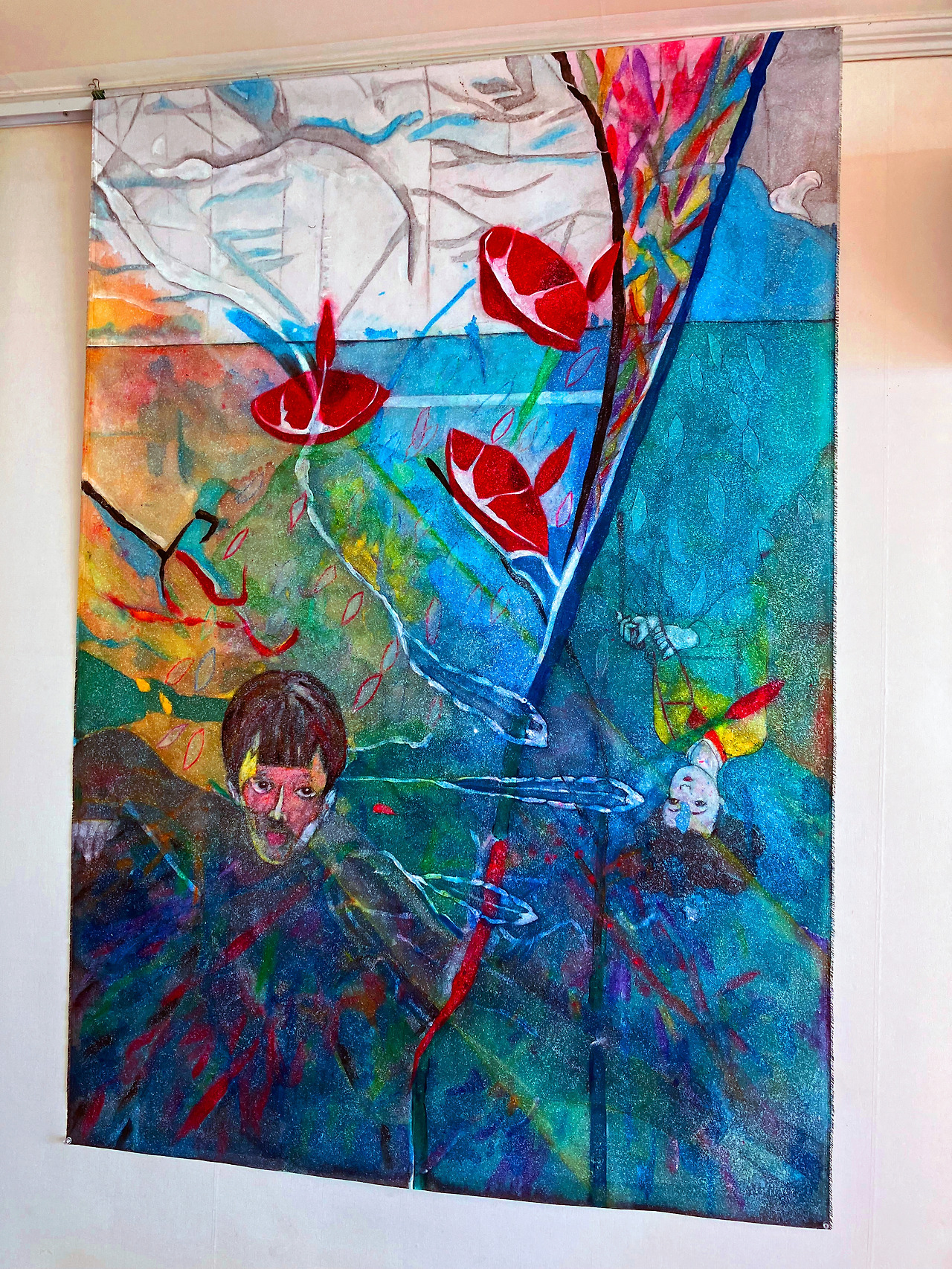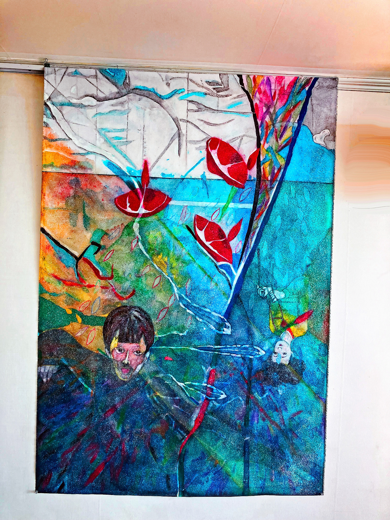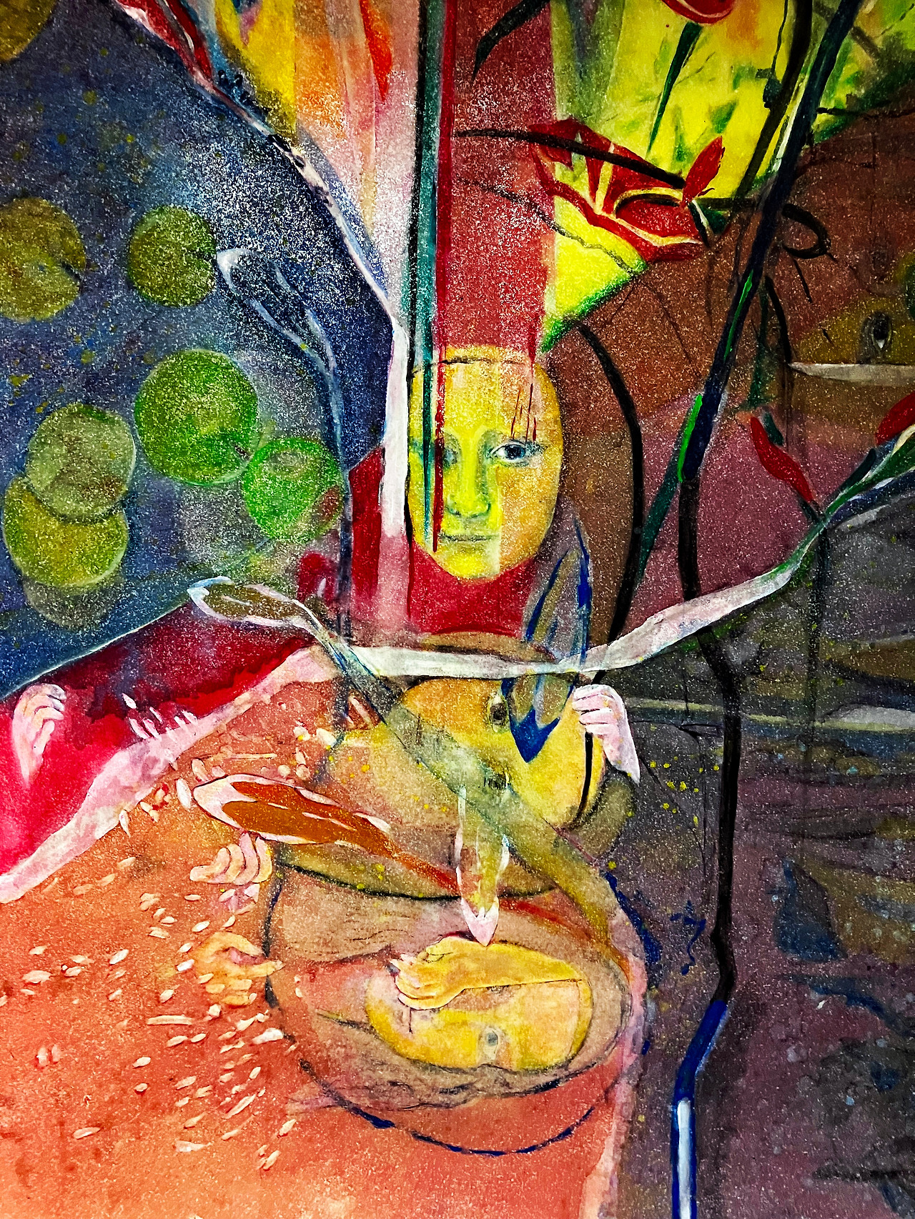 Louis Choi Chul-joo, Morning glory and fish-Mona Lisa design, 113X165cm, acrylic and composite materials on cloth, 2025