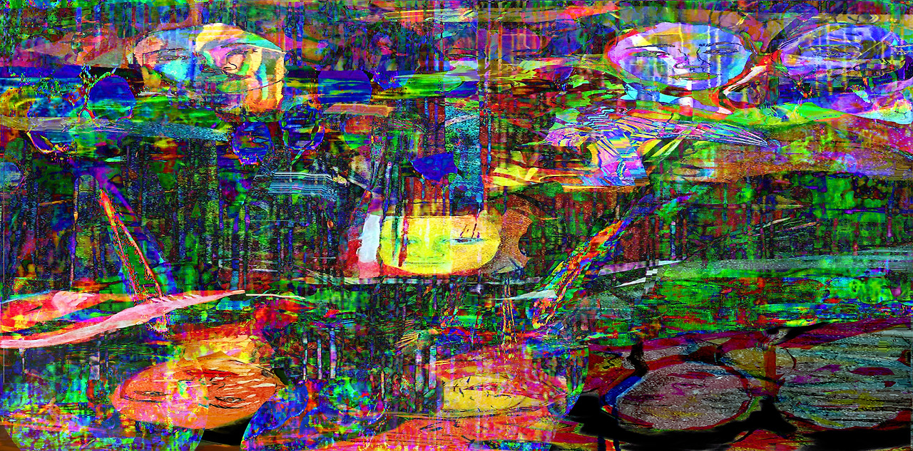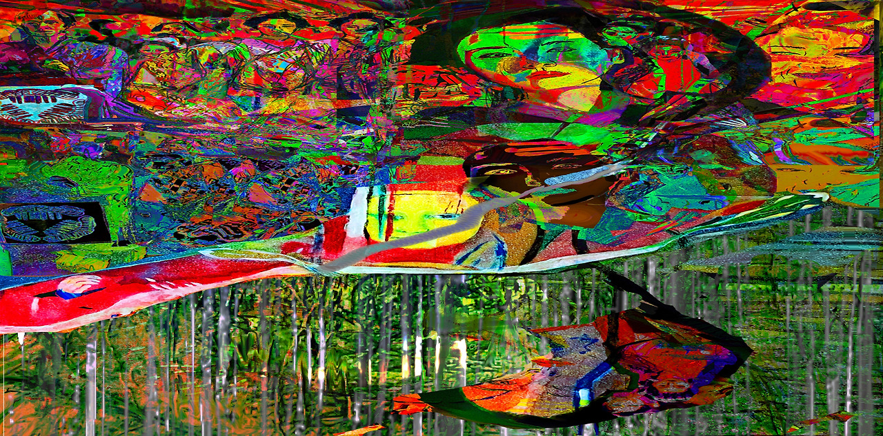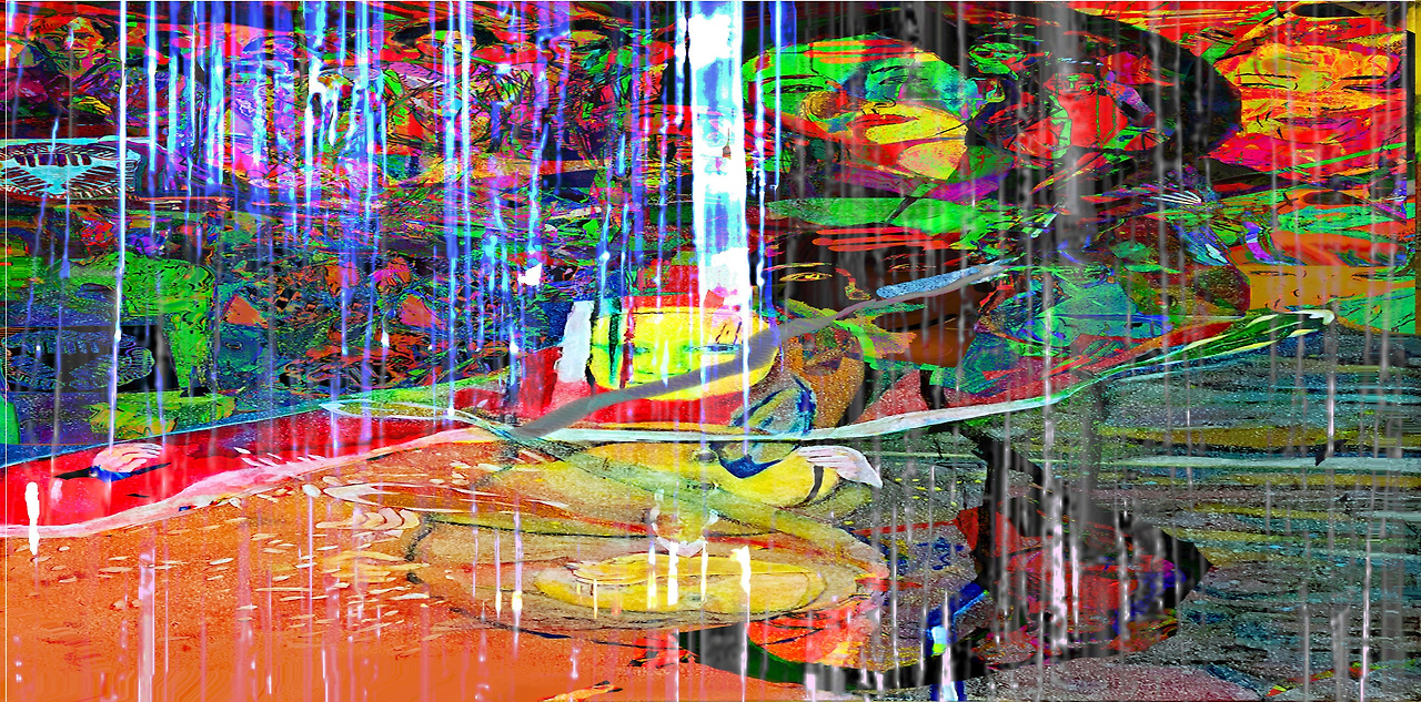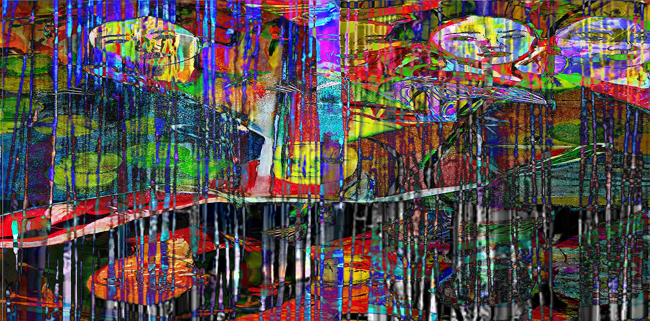 The visualization of the concept of desire: Louis Choi chuljoo, ba-pondmboo forest k274-Morning glory and fish-Mona Lisa design-pond: Visualizing the concept of desire is a cartoon depicting events and performances manually, expressing the background of the cartoon as a landscape of desire with "Bamboo Forest," and the cartoon image reconstructs desire into an abstract and realistic picture.