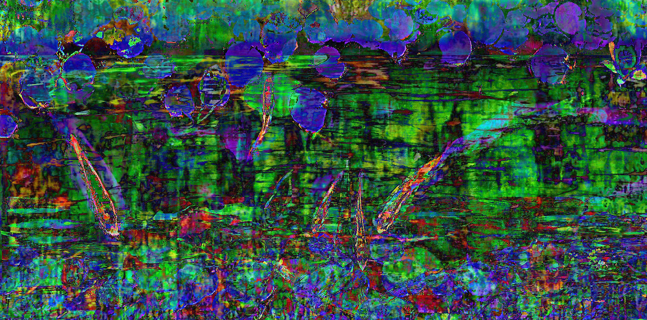 Desire Concept Realistic Abstract Work: Louis Choi Chul-joo, bamboo forest 274-Morning glory and fish-Mona Lisa design, a hand-painted picture on a computer: By repeatedly applying the concept of imaginary world and desire and Choi Chul-joo's desire formula <D(I...I')d=I(D...D'i)i> to the image of the work, it acquires aesthetic value and reveals its meaning by realizing formability in the shadow of reversible light. / The meaning of the shape, which is covered by the actual changed instantaneous movement of the shape, results in linguistic abstraction. In other words, the realistic shape of the other person's desire in a momentary event is a linguistic abstraction of the same meaning. Conceptual art with morning glory and bamboo as cultural background is linguistic abstraction. The abstract creates a conceptual structure based on the shape of subsequent reality fostered by language and hides the desire of others in a momentary event.